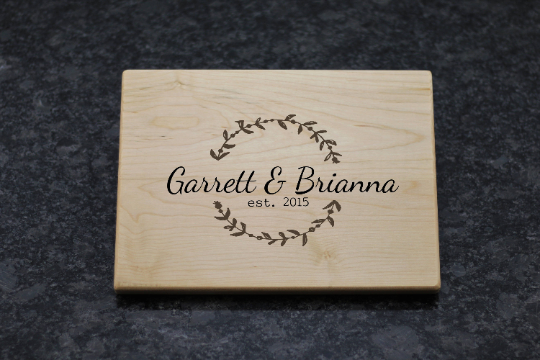 Add a one of a kind, personal touch to your kitchen with a Driftless Studios Personalized Cutting Board that features your names and established date. Our personalized cutting boards also make the perfect gift for a wedding, anniversary, or house-warming!