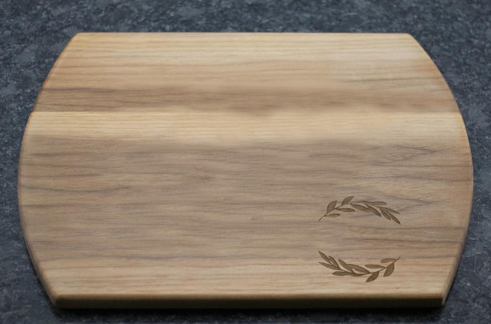 - All of our cutting boards are 3/4 inches thick and made with premium hardwoods (maple, cherry, walnut, and mahogany) and we offer multiple sizes (9x12 and 12x16) and two different styles (arched or rectangle).