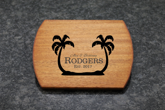Commemorate memories and make new ones with a one of a kind Driftless Studios Personalized Cutting Board that features your first names, last name, and established date in a funky beach design. Our personalized cutting boards also make the perfect gift for a wedding, anniversary, or house-warming!