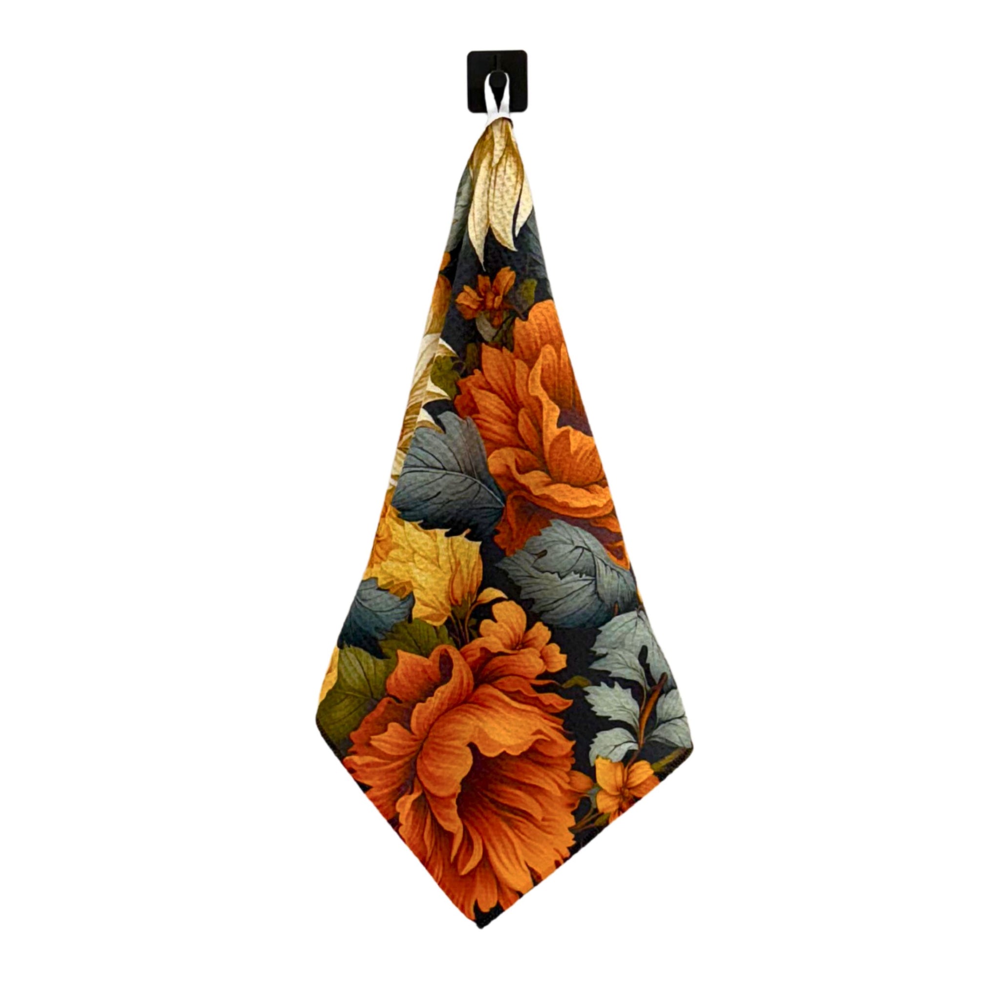Blue Flower Patterned Waffle Kitchen Towel With Hanging Loop - WFL022