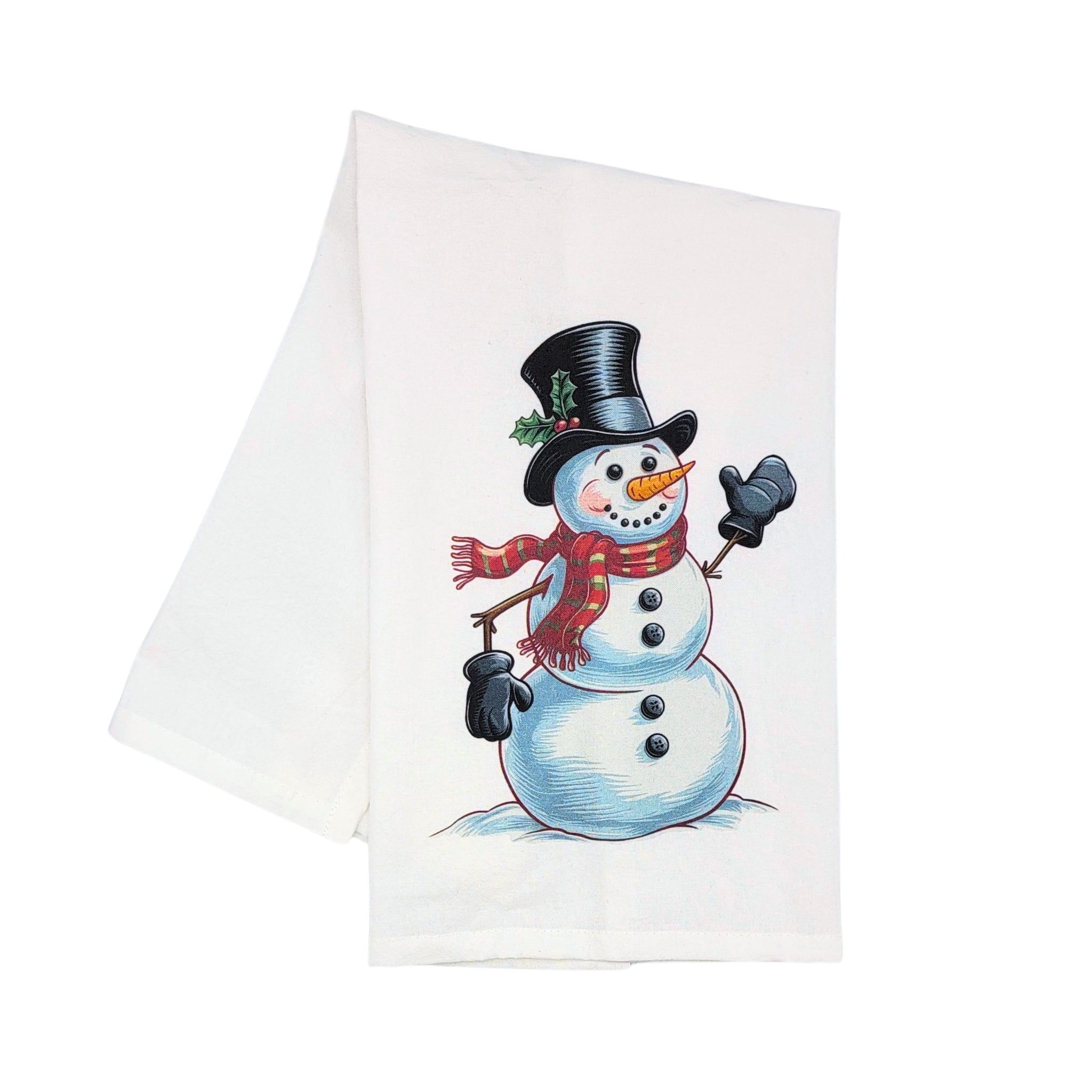 Snowman With Christmas Tree Kitchen Tea Towel + Hanging Loop - WFL050